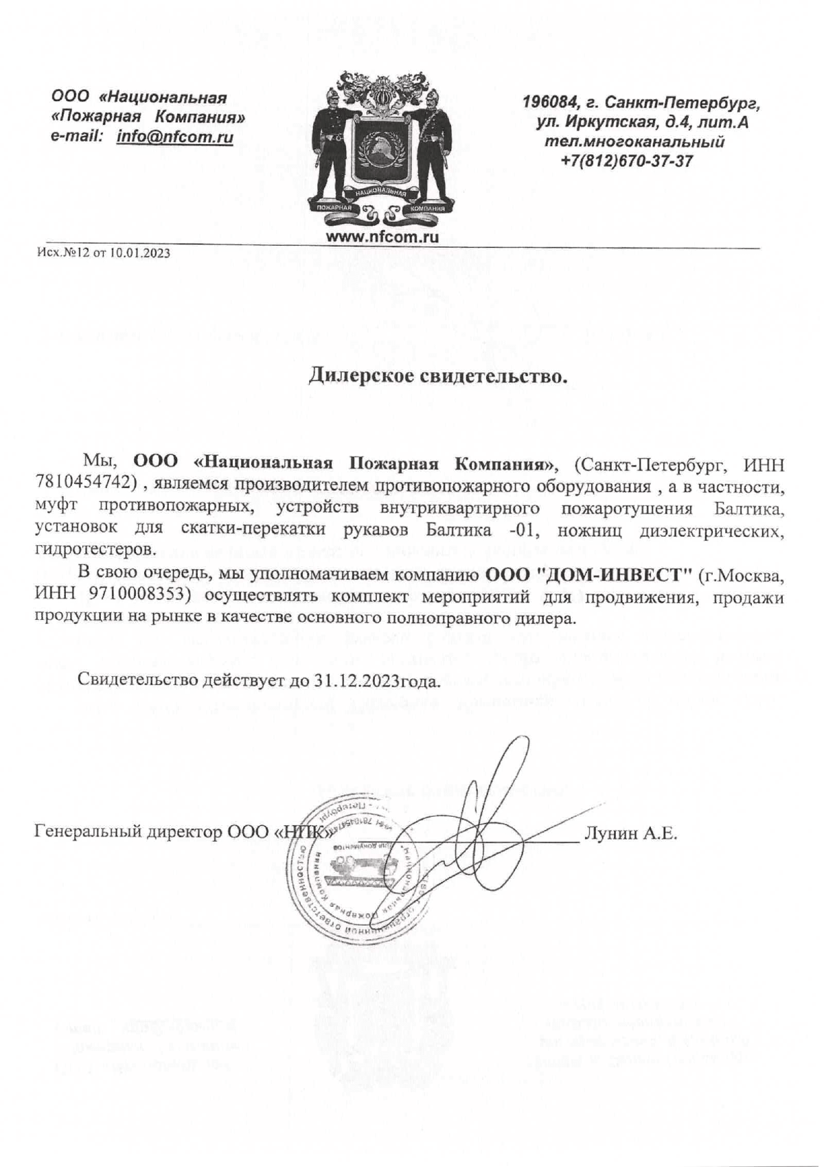 Компания ООО "Дом-инвест" является одним из Поставщиков пожарного оборудования для наших подразделений Иркутской области. Все поставки выполняются в срок и без претензий с нашей стороны.